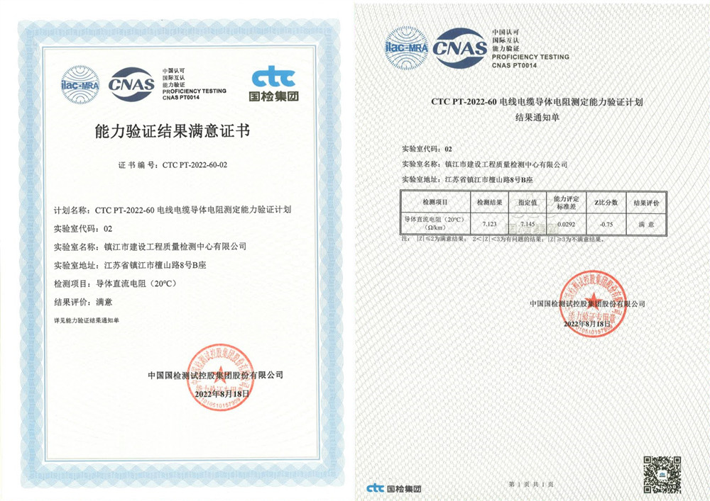 此次能力验证的顺利通过,表明我中心在电线电缆产品的关键项目导体电阻具有扎实的检测能力,充分体现中心各项体系运行有效。今后,我中心将继续稳中求进,进一步提高自身检测能力,持续为客户提供满意的检测服务。
