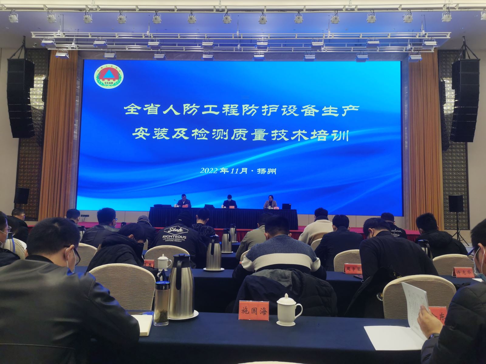 为加强人防工程防护设备质量管理,提升技术能力水平,11月29日至12月2日,省人防办在扬州组织召开了人防工程防护设备生产安装及检测质量技术培训暨防护设备管理工作座谈会。参会人员有各设区市人防质监站负责人、人防工程防护设备生产企业、防护设备质量检测工作负责人及技术骨干。我单位副总经理韦平云、人防检测科室鲍全、陈鹏飞参加了会议。
