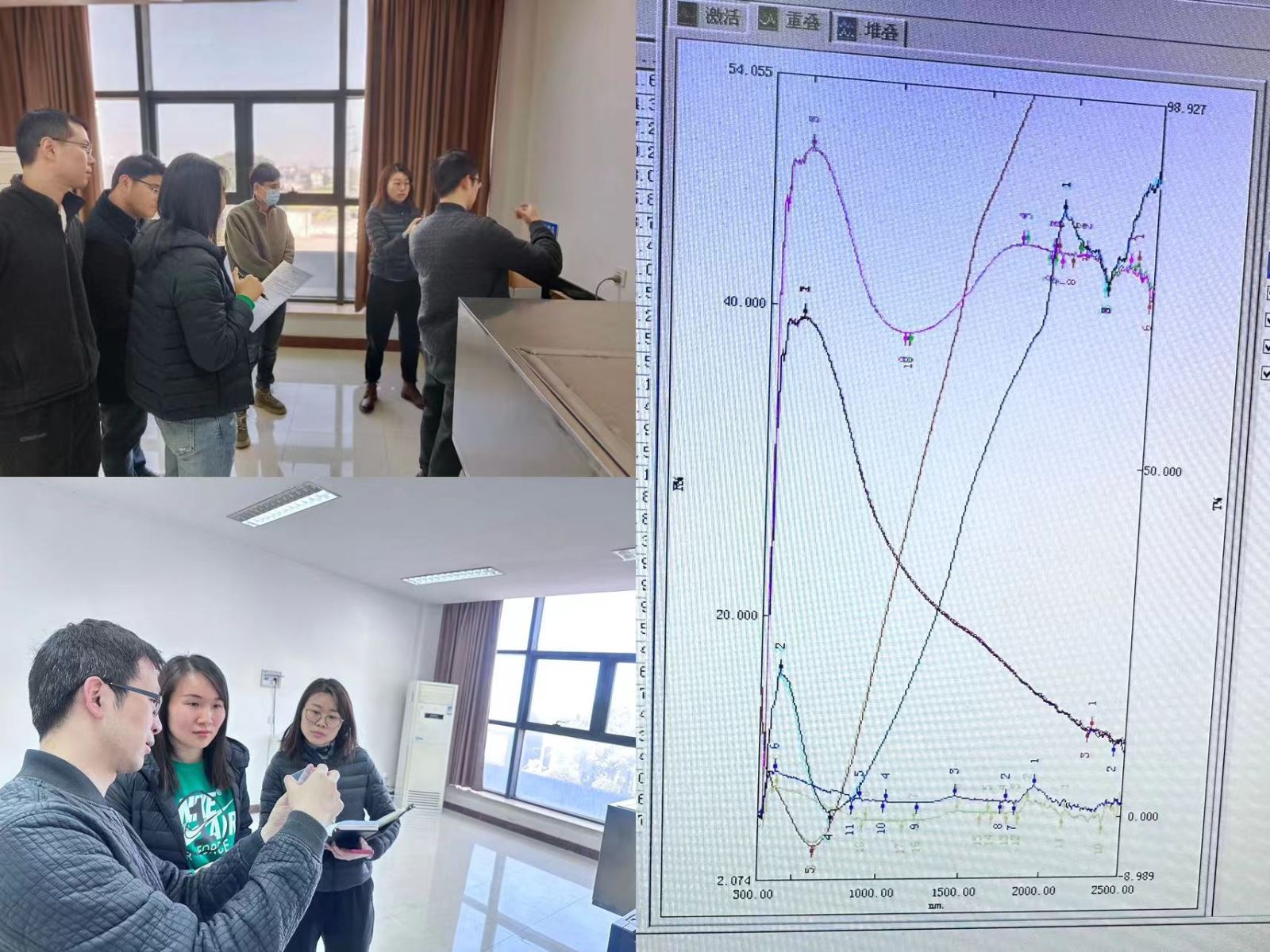 2024年3月22日上午,根据科室年度学习工作计划,中心业务一科窗口代表来到建筑玻璃光学性能试验室,进行观摩学习。试验员首先介绍了检测设备原理、常见玻璃种类、玻璃区分方法。演示从样品表面的预处理开始,对普通透明和Low-E单片玻璃的光谱透(反)射比分别进行了扫描。通过比对观察不同玻璃的光谱曲线特点,分析了不同品种玻璃对各波段太阳光的透(反)射特性。业务代表就钢化玻璃的光学性能是否可实施检测、内置百叶玻璃制品露点样品的密封等客户关心问题向试验员提出了疑问并做了交流探讨。同时学习了Low-E玻璃镀膜层位置判断的常见办法。此次学习加深了窗口人员对玻璃样品的认知、对光学性能的检测过程有了基本的认识。为进一步拓展业务知识,提升服务水平打下基础。