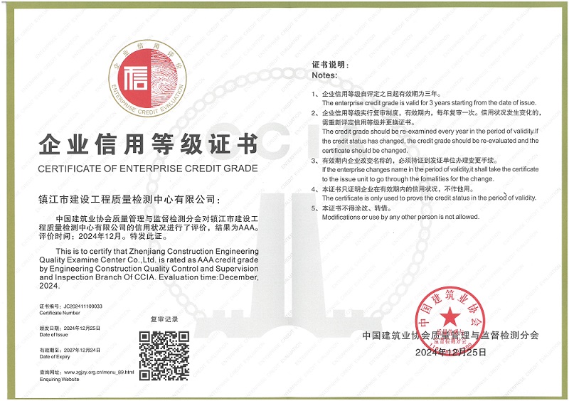 近日,检测中心连续三次荣获中国建筑业协会组织的建筑业信用评价AAA级企业信用等级证书(建设工程质量检测机构)。根据中国建筑业协会《建筑业企业信用评价办法》,建筑业企业信用等级分为AAA、AA、A、B、C三等五级。AAA是最高级别的信用认定,表示受信单位诚信度很高,各项指标优秀。